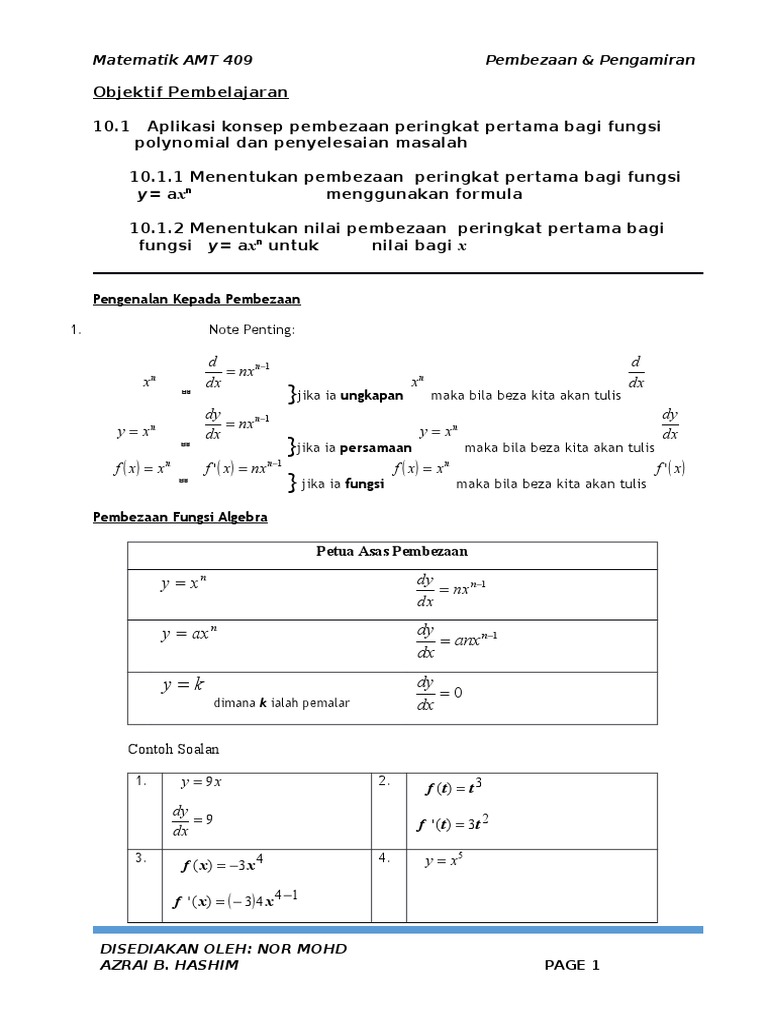 Contoh jawapan Satu persamaan linear dan satu persamaan tak linear dibentuk dengan betul. Pengamiran ialah proses songsang bagi pembezaan dx dy f x kamirkan f x utk dapatkan y f xdx Pengamiran Tak Tentu. Nota pengamiran 1.